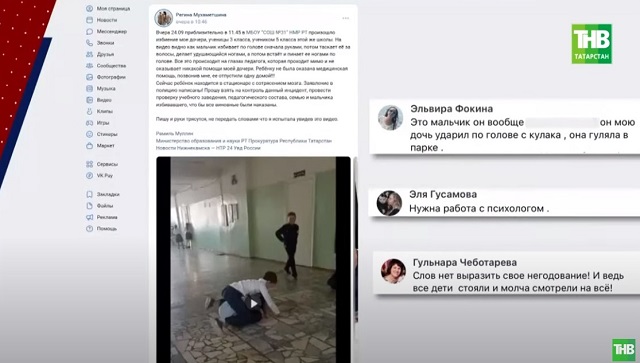«Увиденное вызывает шок, гнев, недоумение и серьезное опасение за психическое состояние мальчика, который способен ударить девочку, бить ногами. Она не могла сопротивляться. Это наводит ужас и опасения, что с этим мальчиком будет дальше. В таком случае надо спрашивать и с родителей, почему ребенок настолько агрессивен», — отметила Уполномоченный по правам ребенка в РТ Ирина Волынец.
