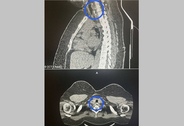 КТ показало, что косточка практически закрыла просвет пищевода. Достать инородное тело через рот было невозможно. Торакальные хирурги разрезали шею, пищевод и аккуратно извлекли косточку.